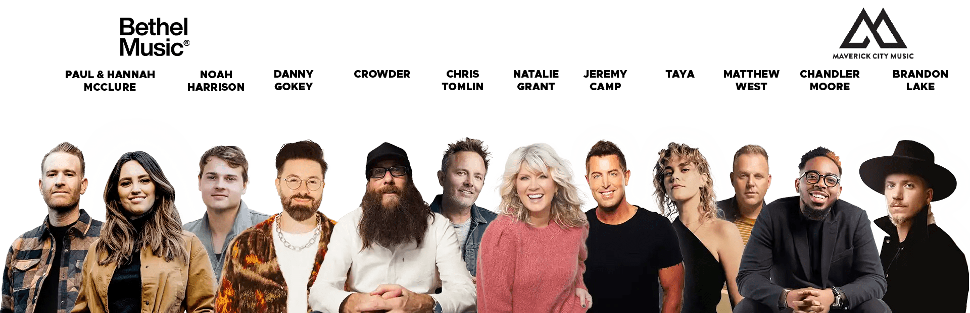 Left to Right, Top to Bottom: Noah Harrison, Paul McClure, Hannah McClure, Crowder, Danny Gokey, Matthew West, Natalie Grant, Chris Tomlin, Jeremy Camp, TAYA, Chandler Moore, Brandon Lake